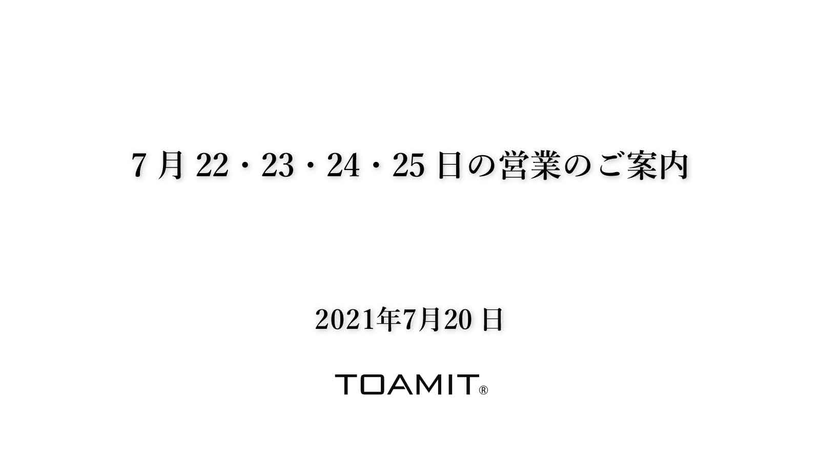 ●【休業期間】:2021年7月22日(木)~2021年7月25日(日)