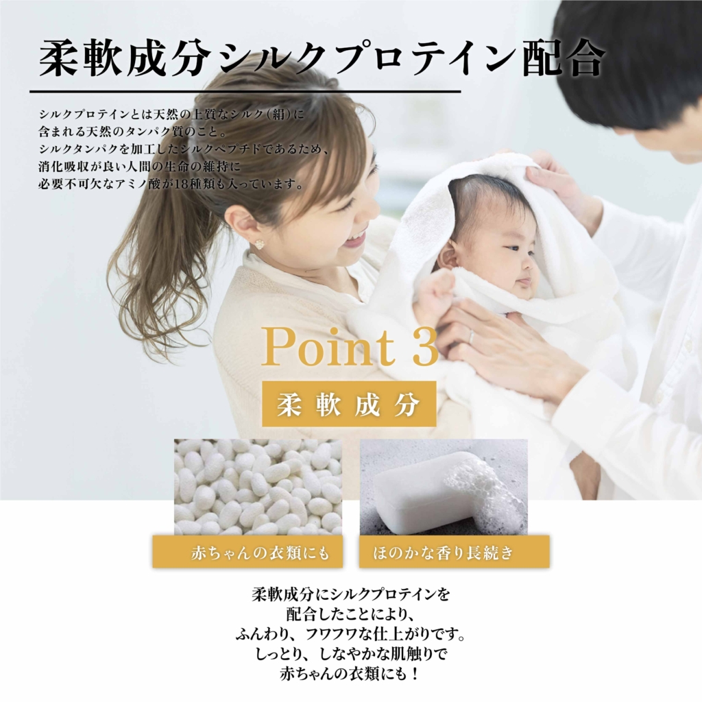 シルクプロテイン:長持ちダメージケア!ベビー衣類にも!
